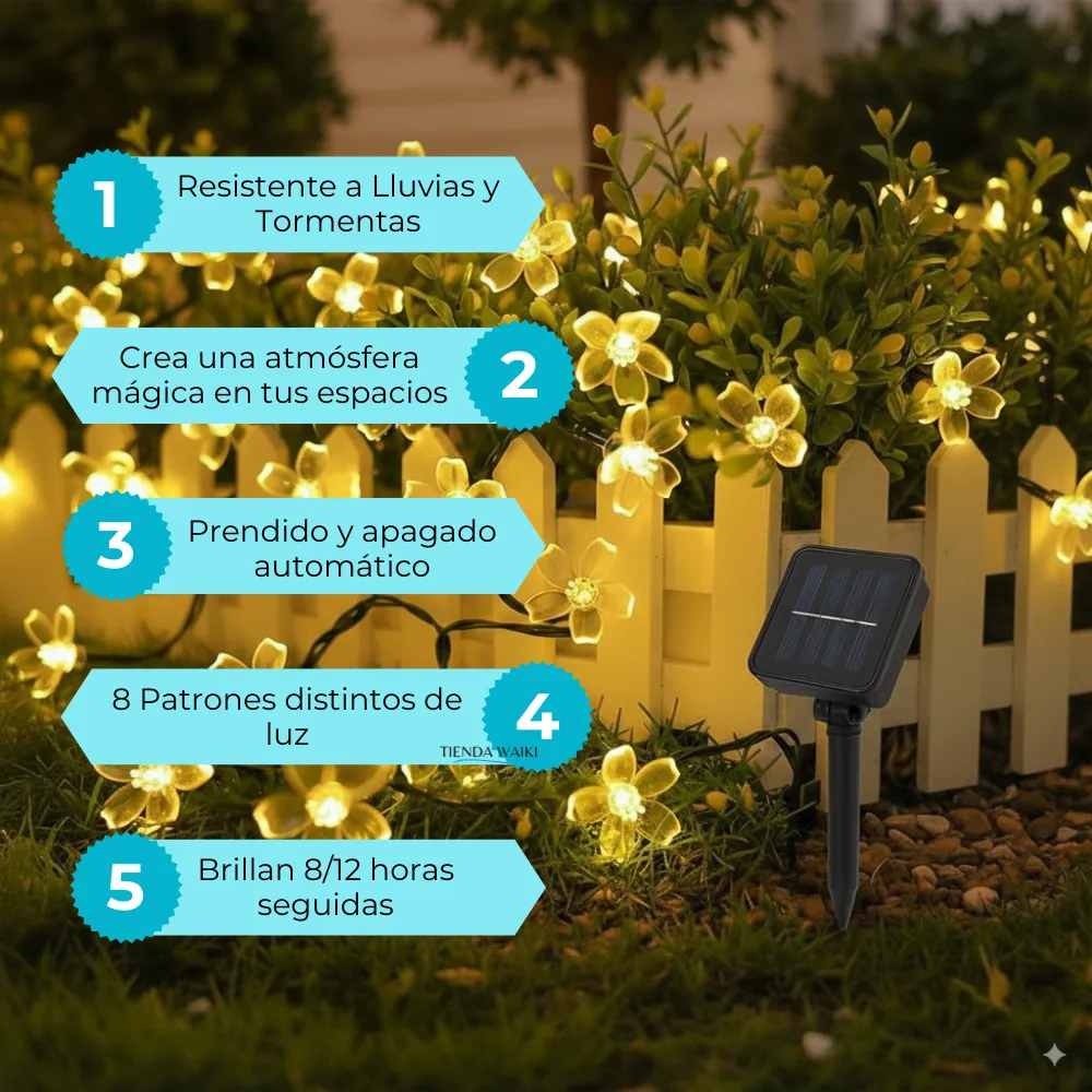 LUZ LED SOLAR FLORCITAS CALIDAS