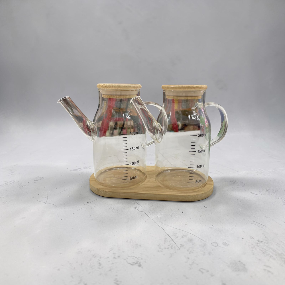 SET ACEITERO Y VINAGRERO DE VIDRIO TAPA BAMB