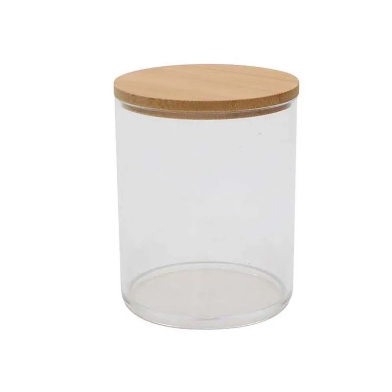FRASCO ESPECIERO DE VIDRIO C/TAPA BAMBU 8X5
