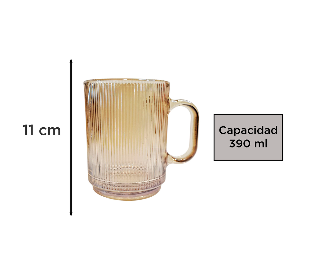 TAZA MUG VIDRIO C/LINEAS COBRE 390ML