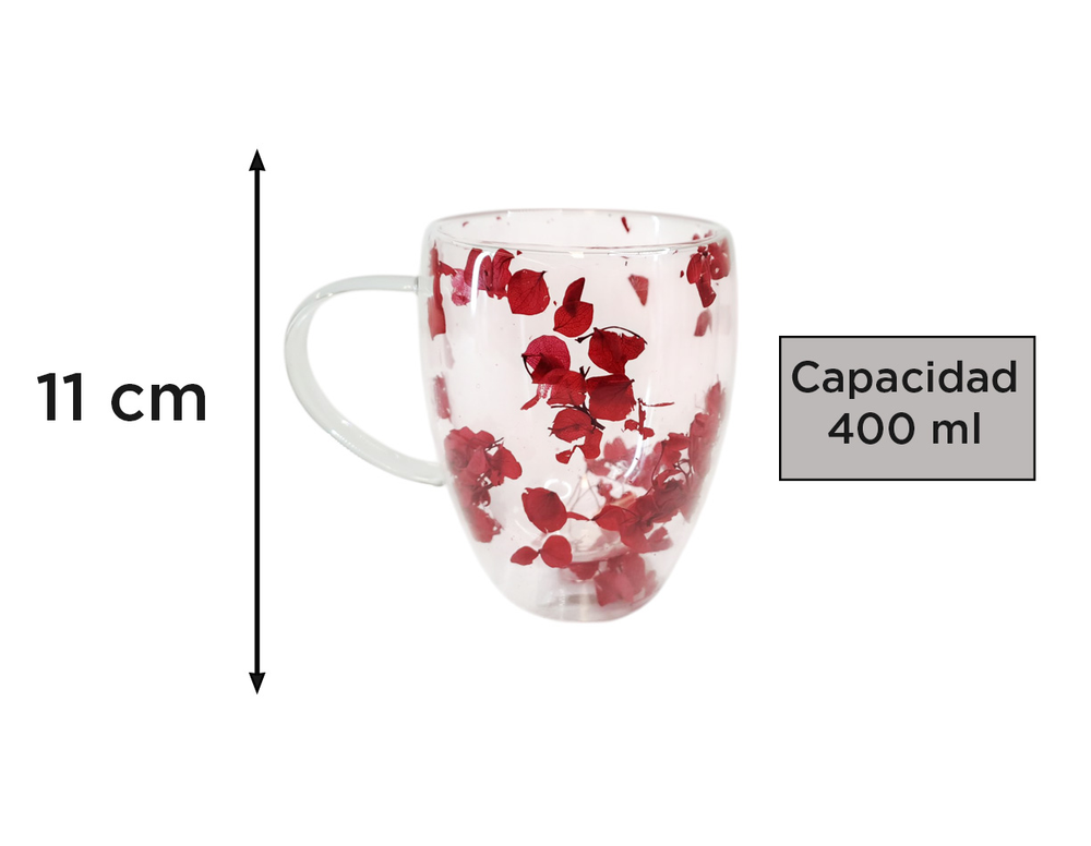 TAZA VIDRIO DOBLE C/ASA Y FLORES